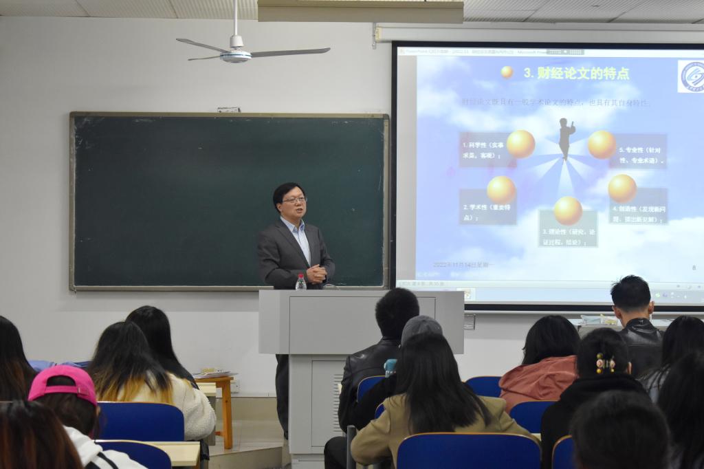 11月14日下午,校党委副书记刘建民走进云综教C601教室,为文新学院新闻1901班、1902班全体同学讲授《财经论文选题与写作》并与学生们亲切交流。文新学院院长刘建新,党委副书记陈仁凯、刘莎,青年教师吴梦圆,19级…